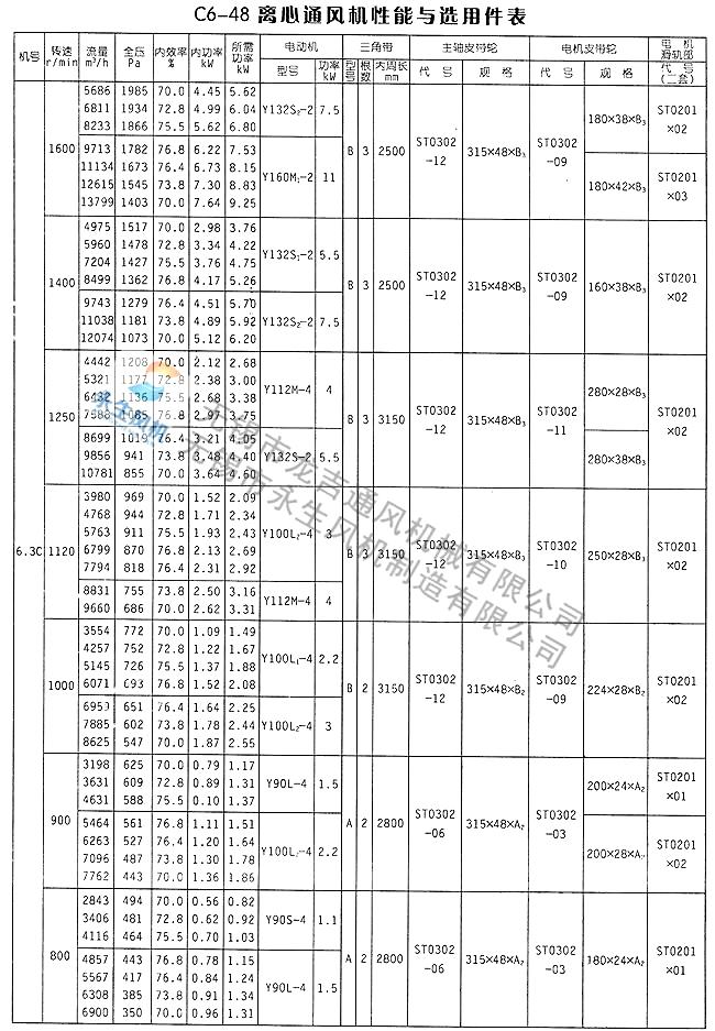 通风机制成单吸入、有NO3.15、NO4、NO5、NO6.3、NO8、NO10、NO12.5共7个机号